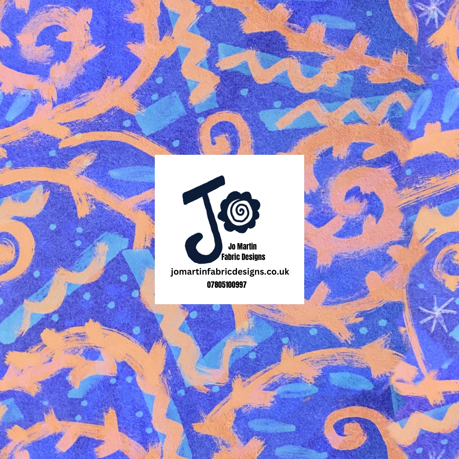Whimsical spiral design.Fabric is Cotton poplin and measures 50 cm x 55cm