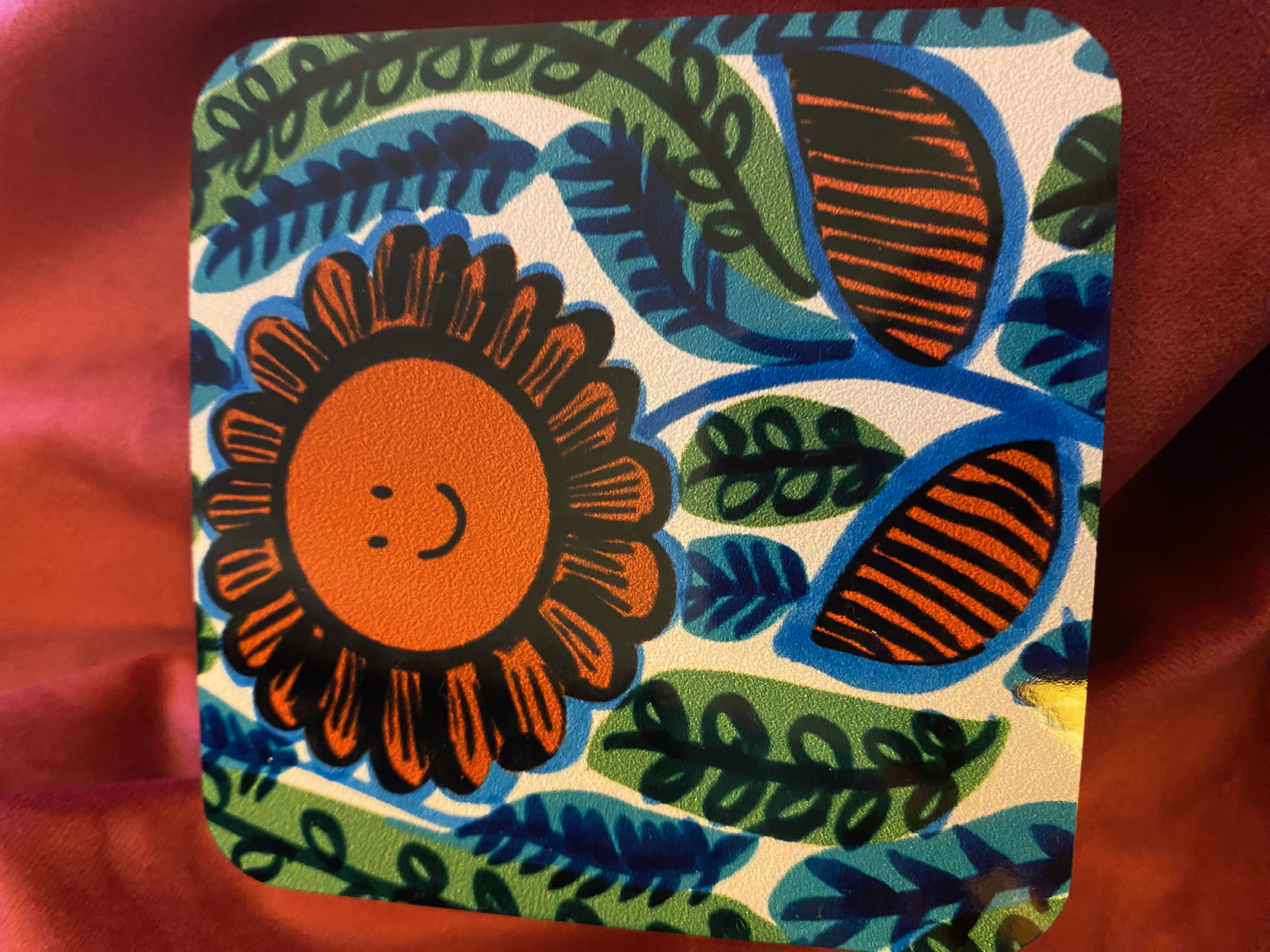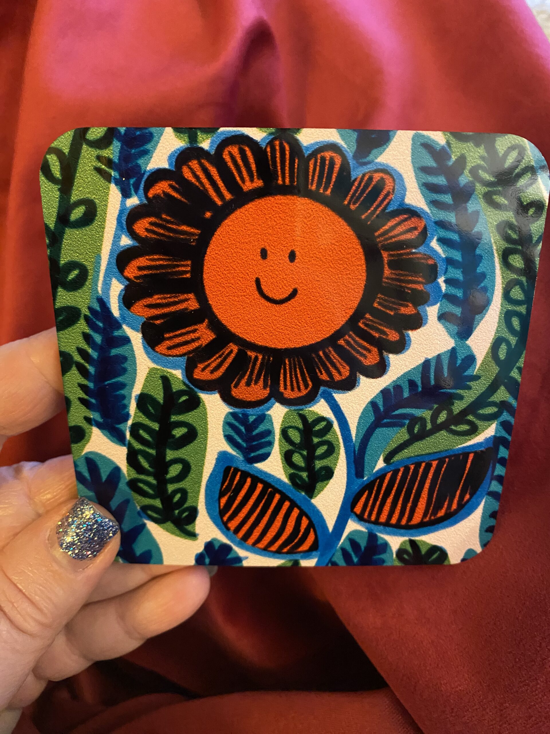 Happy Flower orange and green coaster. Part of the Baby Bean Collection.